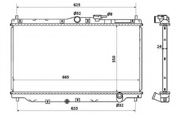Розміри радіатора 350 X 687 X 22 mm